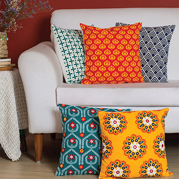 A cushion is a soft bag of some ornamental material, usually stuffed with wool, hair, feathers, polyester staple fiber, non-woven material, cotton, or even paper torn into fragments. It may be used for sitting or kneeling upon, or to soften the hardness or angularity of a chair or couch.